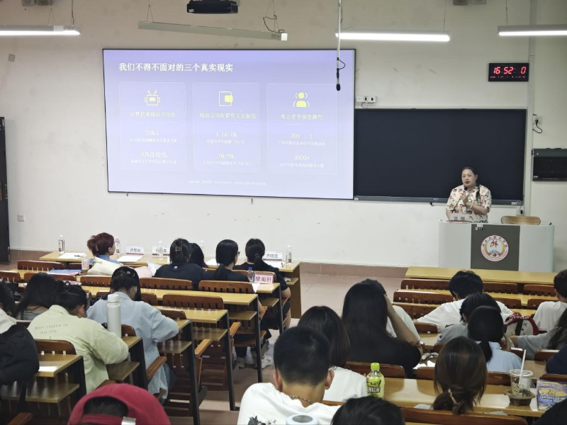2026年4月27日下午,会计学院在时习楼A202教室举行数智财务、智慧税务微专业宣讲会,本次宣讲会主要面向欧美语言文化学院各专业的学生。会计学院院长李春友教授,财务管理系副主任李炘擂,税收学系副主任卢昱璇,以及教师代表齐晓滢、吉翔出席活动,本次宣讲会由黄湘倚老师主持。