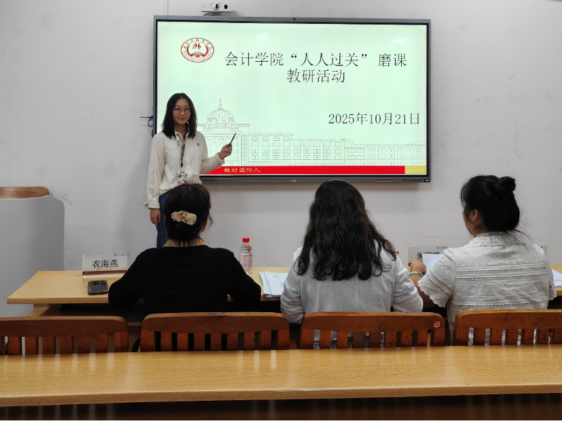 为深化教育教学改革,提高教师授课质量,10月21日下午,会计学院在大同楼多个智慧教室举行“人人过关”磨课教研活动。学院专任教师以小组为单位,通过“教学设计+课堂展示”双环节实战演练,共研教学创新,共筑质量基石。