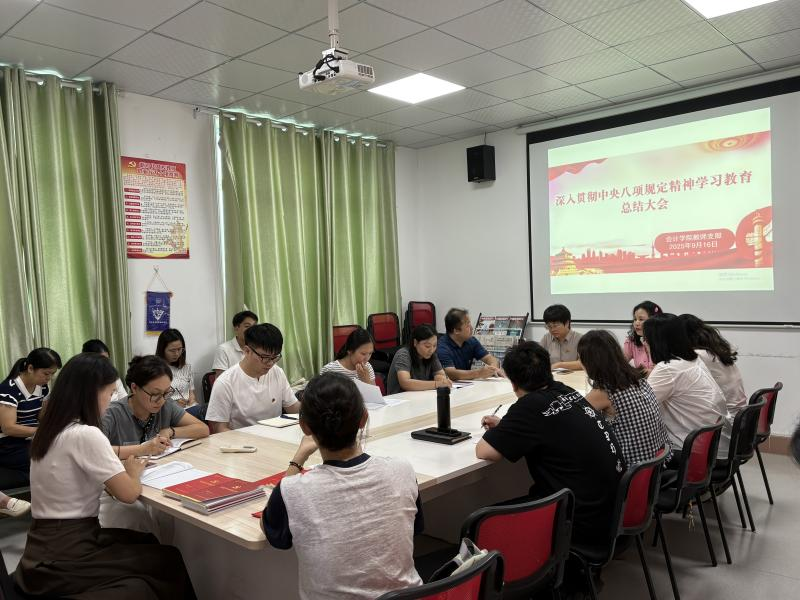 2025年9月16日下午,会计学院教师党支部在学院会议室召开深入贯彻中央八项规定精神学习教育总结大会,全体教师党员参会。