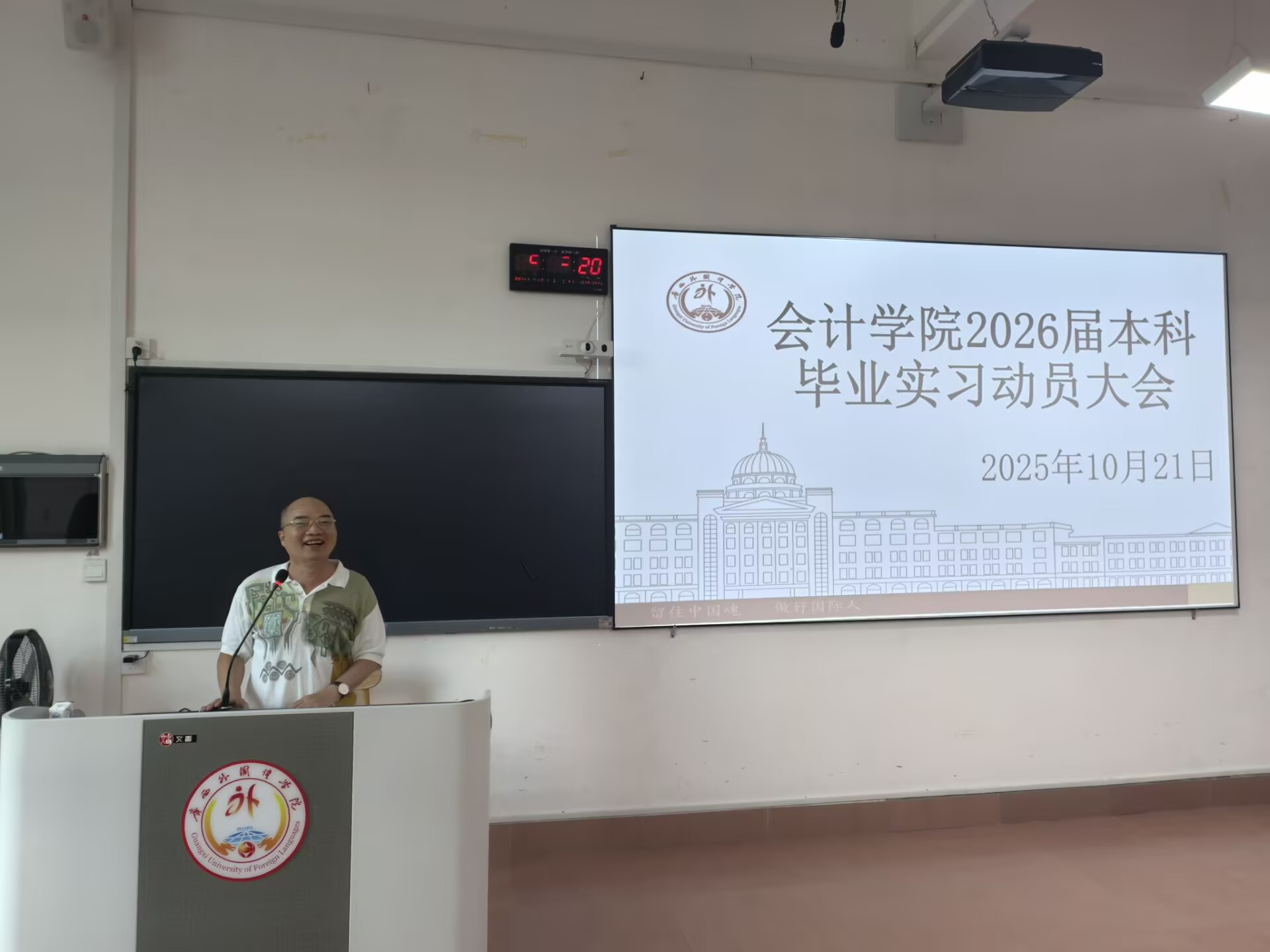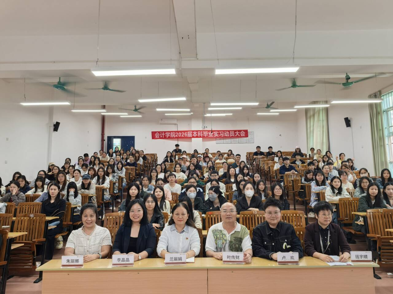 为切实做好2026届学生毕业实习工作,助力学生顺利开启职场征程,2025年10月21日下午,会计学院举办了2026届本科毕业实习动员大会。会计学院院长叶传财博士、执行院长卢欢副教授、副院长钱宇晴博士,党总支书记兰丽娟教授、党总支副书记李晶晶副教授以及财务管理系主任叶宇璐、审计系主任朱丽娜、税收系主任谢清,毕业班辅导员、班主任以及2026届全体本科毕业生参加此次大会。