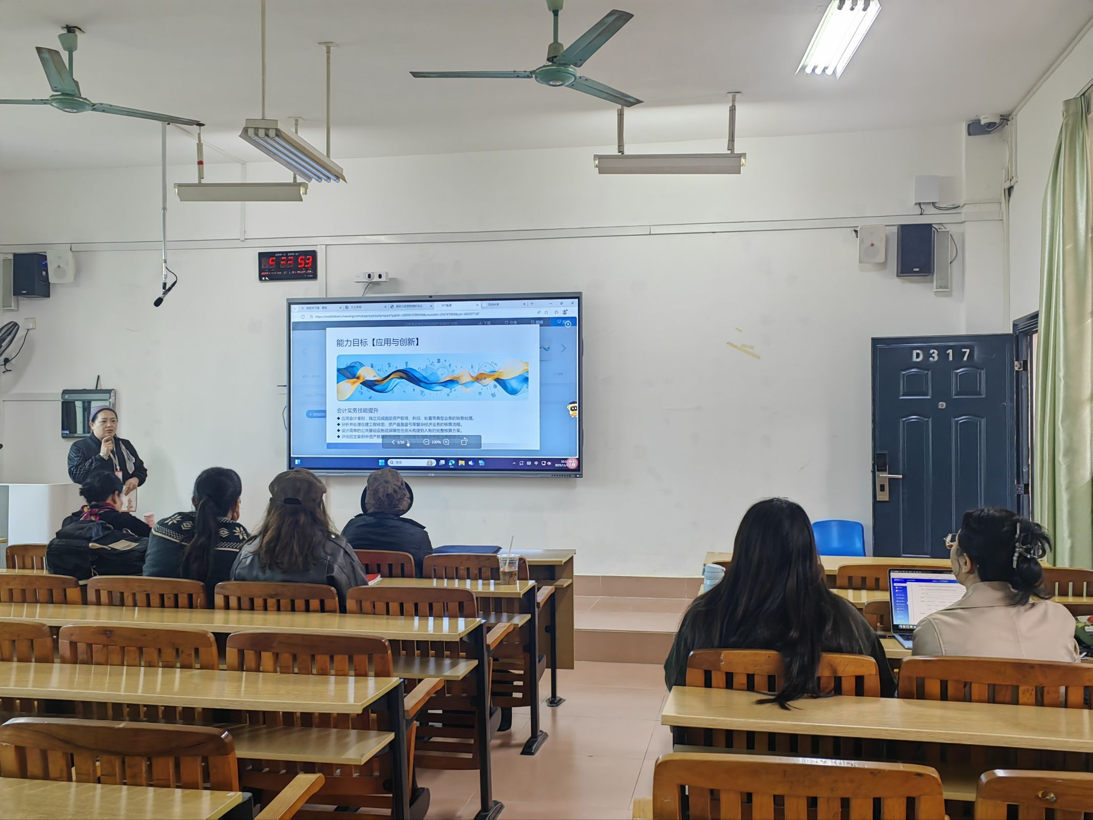 随后,全体教师按照专业课程特点,分为八个研讨小组,分别在D307、D309等教室开展磨课研讨。各小组在组长带领下,围绕课程的高阶性、创新性、挑战度如何体现,以学生为中心的教学理念如何落实,课堂互动时机与形式,以及AI赋能教学等关键问题进行了深入探讨。每位教师依次进行8-10分钟的教学设计展示,并接受组内成员的点评与建议。