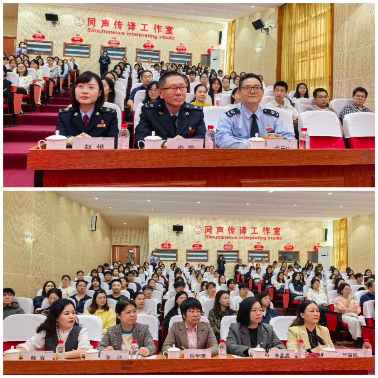 青秀区税务局党委委员、副局长赵烨,第一税务分局党支部书记、分局长卢玉山,南宁市税务局纳税服务中心(税收宣传中心)副主任李赞等税务干部一行莅临现场。广西外国语学院会计学院党总支书记兰丽娟、党总支副书记李晶晶、教师支部书记钱宇晴等学院领导、党员教师及140名学生代表共同参加了活动。活动由会计学院许卉教授主持。