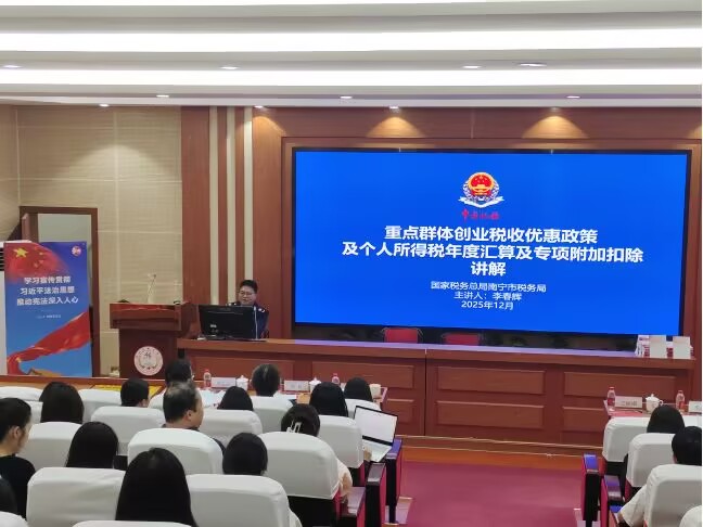 一是重点群体创业就业税收优惠政策。李春辉同志结合大学生创业实际,系统梳理了当前国家支持重点群体创业就业的系列税收扶持政策,包括增值税减免、企业所得税优惠、个人所得税优惠等具体内容。他通过案例分析,详细说明了政策适用条件、办理流程和注意事项,为有创业意向的同学提供了清晰的税务指引。