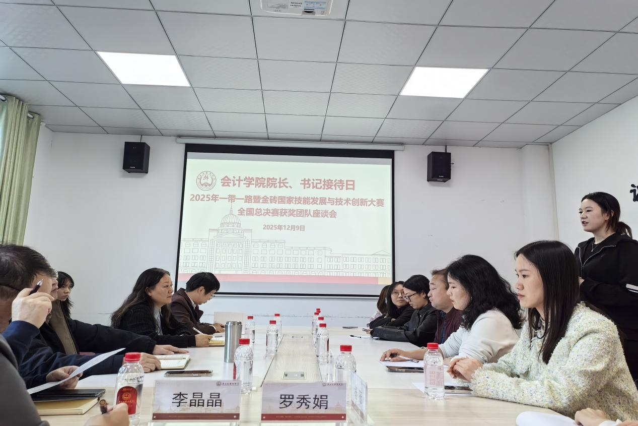 会计学院召开2025年一带一路暨金砖国家技能发展与技术创新大赛全国总决赛获奖团队座谈会暨院长、书记接待日活动现场