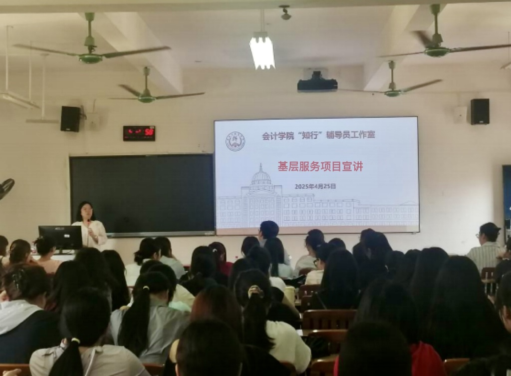 为引导毕业生树立”向下扎根、向上生长”的就业观念,助力学子明晰基层服务项目政策、拓宽就业渠道,近日,会计学院组织2025届毕业、2026届毕业生开展线上线下基层服务项目专场宣讲会。会计学院党总支副书记李晶晶老师担任主讲人,为同学们详解选调生、村官、特岗教师、“三支一扶”等基层项目的核心信息。