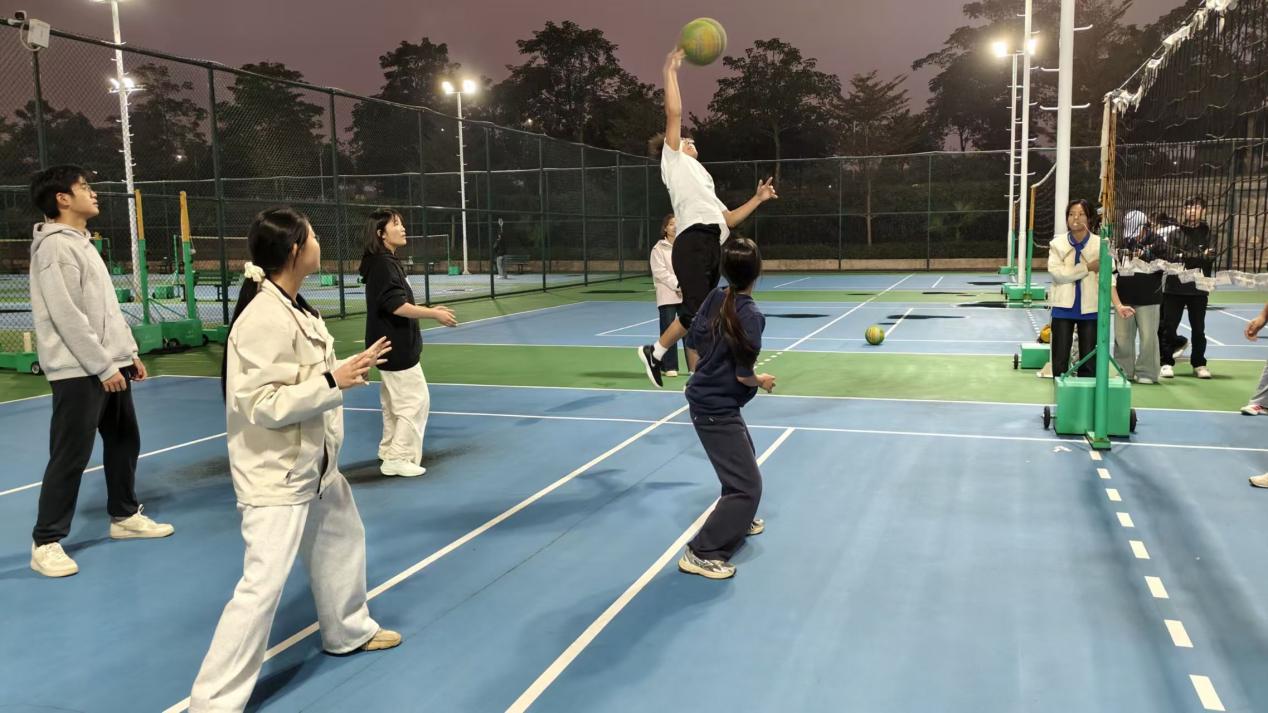 比赛现场氛围热烈,每场对决前,对阵班级队员整齐列队、相互握手致意,举止有序,尽显体育竞技的文明风范,传递出“友谊第一、比赛第二”的竞技理念。随着裁判哨声响起,队员们迅速进入状态,传球精准流畅,扣杀果断有力,防守灵活沉着,拦网严密高效,攻防转换节奏紧凑,充分展现气排球运动的魅力,赛场周边,观赛师生热情高涨,呐喊助威声此起彼伏,每一次精彩得分都引发全场喝彩,热烈氛围持续升温。