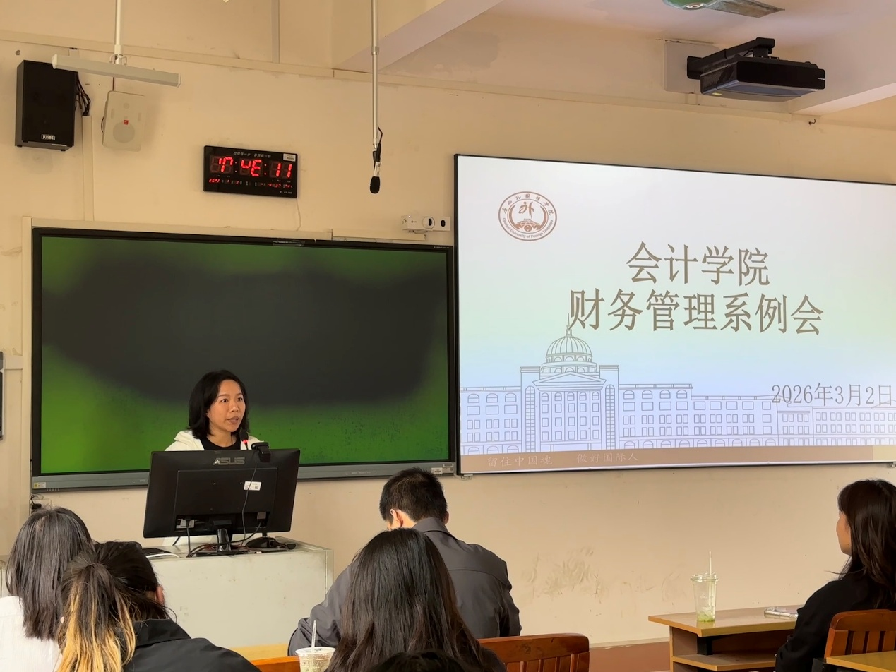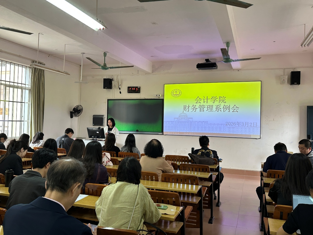 2026年3月2日上午,会计学院财务管理系在大成楼C303教室召开新学期首次教学工作会议。会议由系主任叶宇璐主持,全体财务管理系教师参加。