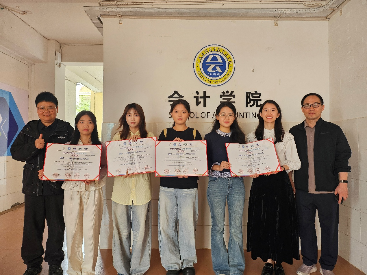 获奖团队由卢欢、杨薇两位老师指导,黄思铭、杨惠岚、张馨月、庞朝云四位同学组成。在2025年11月23日落幕的全国总决赛中,他们凭借扎实的专业基础和出色的数据处理与分析能力,为学院争得荣誉。