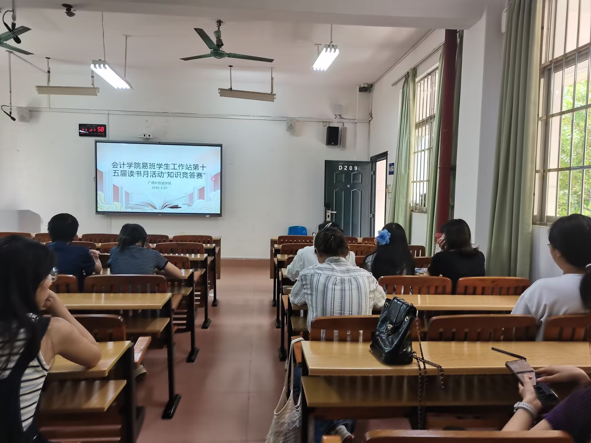 为丰富读书月活动形式,激发大家的阅读热情,4月21日下午,会计学院易班学生工作站在大同楼D209成功举办了读书月活动“知识竞答赛”。此次活动依托易班APP平台开展,以趣味竞答的形式搭建阅读交流桥梁,在云端掀起了乐学善读、比拼知识的热潮。