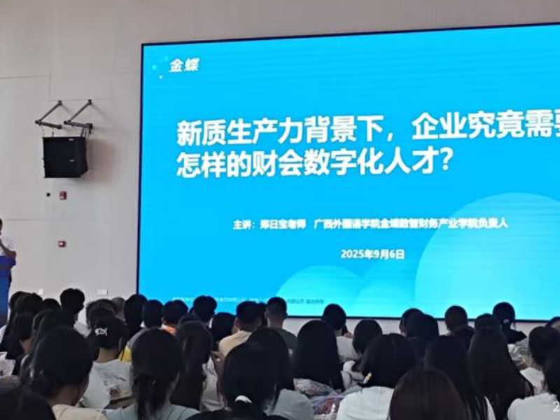 为了帮助2025级新生深化对财务数字化工具的认知,会计学院于2025年9月6日下午在空港校区明德楼博学大讲堂开展金蝶宣讲会。出席本次讲座的有会计学院院长叶传财博士、副院长钱宇晴博士、党总支副书记李晶晶副教授、金蝶宣讲人郑日宝老师、各新生班级辅导员以及2025级全体同学。