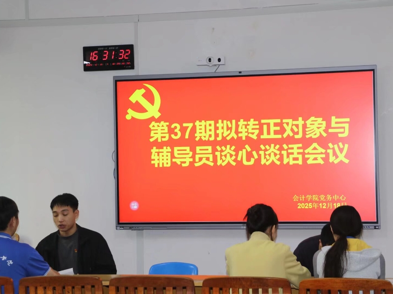 会计学院党总支于2025年12月18日下午16:20在大同楼D209召开辅导员与第37期拟转正对象谈心谈话会议。第37期拟转正对象及各位辅导员同志参与本次会议。